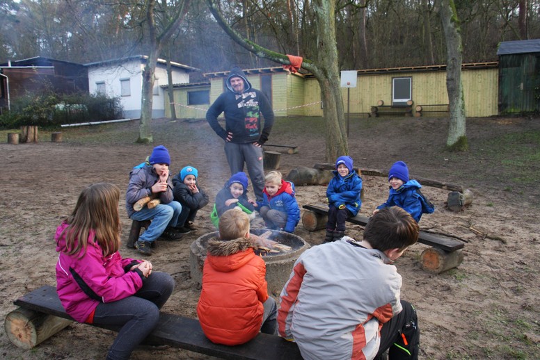 Vom 23.12.15 bis zum 08.01.16 bot der Wander- und Lennebergverein „Rheingold" Ferienbetreuung für Kinder im Alter von 5 – 12 Jahren an. An den 9 Betreuungstagen erfreuten sich 31 Kinder, größtenteils aus der Verbandsgemeinde Heidesheim, am abwechslungsreichen Programm. Das Team um Michael Marckart hatte sich wiedermal einiges an jahreszeitlichen Aktionen ausgedacht und war gut vorbereitet. Auch Petrus gab sein Bestes und bescherte meist trockenes und nicht zu kaltes Wetter. Passend zur Weihnachtszeit war auf alle Fälle basteln angesagt. Natürlich mit Naturmaterialien wie Holz, Rinde und Moos. Die so entstandene Krippe mit Maria und Josef, Ochse und Esel, einer kleinen Schafherde und den 3 heiligen Königen. Liebevoll wurden nach einvernehmlicher Abstimmung die einzelnen Figuren platziert und zu einem „Gesamtbild" kreiert. Auch Holzengel, Sterne und Weihnachtsbäume waren vor den Feiertagen Schwerpunkt. Dann kam die Zeit der Waldgeister, Trolle und hervorragenden Fantasie-Zwerge. Zwischendurch wurden aus Holzscheiben Wasserräder gebastelt und anschließend ausprobiert. Die täglichen, kleineren Wanderungen befassten sich u.a. mit entdeckten Tierspuren und der Pflanzenwelt. So konnte zum allgemeinen Erstaunen ein blühender Baum entdeckt werden. Auch ein umherirrender Grasfrosch, der sich wahrscheinlich noch nicht für ein Winterquartier entschließen konnte, bekam von den Kindern kurze Aufmerksamkeit. In den freien Spielzeiten auf dem Vereinsgelände der Rheingoldruhe wurde auf die Vorschläge der Kinder eingegangen. So konnte geflochten, gemalt oder gebastelt werden. Gewünschte Spiele wie „Rasenmäher", „Kegel verteidigen", Waldversion des Fußballspiels oder die Baumscheibenstaffel ließen die Zeit im Fluge vergehen. Das Mittagessen genoss allerseits großen Anklang. Die viele frische Zutaten machten aus einfachen Gerichten nachhaltige Geschmackserlebnisse. Die Anzahl der „Nachschlagforderungen" sowie die Menge der insgesamt verschlungenen Speisen bestätigten die Bemühungen der Küchenmannschaft. Der von vielen Kindern als Nachtisch zubereitete Obstsalat hatte keine Überlebenschance.