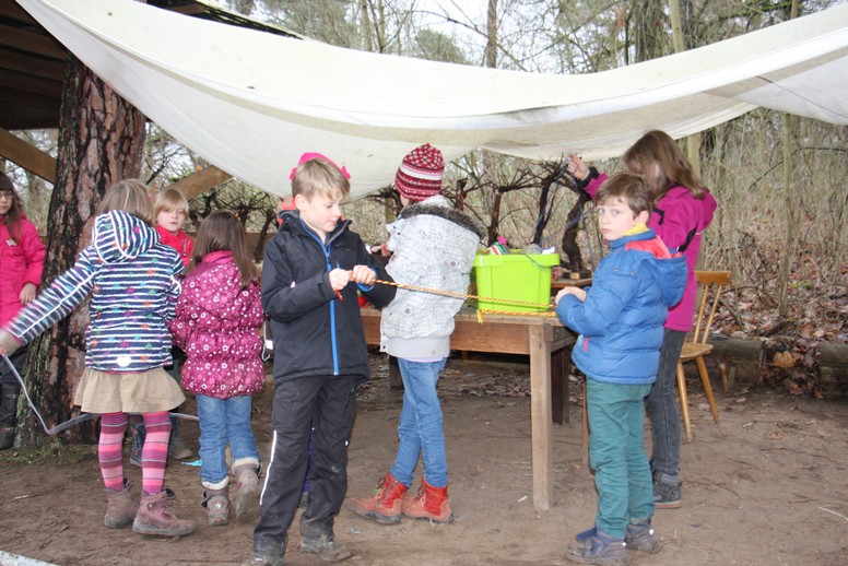Vom 23.12.15 bis zum 08.01.16 bot der Wander- und Lennebergverein „Rheingold" Ferienbetreuung für Kinder im Alter von 5 – 12 Jahren an. An den 9 Betreuungstagen erfreuten sich 31 Kinder, größtenteils aus der Verbandsgemeinde Heidesheim, am abwechslungsreichen Programm. Das Team um Michael Marckart hatte sich wiedermal einiges an jahreszeitlichen Aktionen ausgedacht und war gut vorbereitet. Auch Petrus gab sein Bestes und bescherte meist trockenes und nicht zu kaltes Wetter. Passend zur Weihnachtszeit war auf alle Fälle basteln angesagt. Natürlich mit Naturmaterialien wie Holz, Rinde und Moos. Die so entstandene Krippe mit Maria und Josef, Ochse und Esel, einer kleinen Schafherde und den 3 heiligen Königen. Liebevoll wurden nach einvernehmlicher Abstimmung die einzelnen Figuren platziert und zu einem „Gesamtbild" kreiert. Auch Holzengel, Sterne und Weihnachtsbäume waren vor den Feiertagen Schwerpunkt. Dann kam die Zeit der Waldgeister, Trolle und hervorragenden Fantasie-Zwerge. Zwischendurch wurden aus Holzscheiben Wasserräder gebastelt und anschließend ausprobiert. Die täglichen, kleineren Wanderungen befassten sich u.a. mit entdeckten Tierspuren und der Pflanzenwelt. So konnte zum allgemeinen Erstaunen ein blühender Baum entdeckt werden. Auch ein umherirrender Grasfrosch, der sich wahrscheinlich noch nicht für ein Winterquartier entschließen konnte, bekam von den Kindern kurze Aufmerksamkeit. In den freien Spielzeiten auf dem Vereinsgelände der Rheingoldruhe wurde auf die Vorschläge der Kinder eingegangen. So konnte geflochten, gemalt oder gebastelt werden. Gewünschte Spiele wie „Rasenmäher", „Kegel verteidigen", Waldversion des Fußballspiels oder die Baumscheibenstaffel ließen die Zeit im Fluge vergehen. Das Mittagessen genoss allerseits großen Anklang. Die viele frische Zutaten machten aus einfachen Gerichten nachhaltige Geschmackserlebnisse. Die Anzahl der „Nachschlagforderungen" sowie die Menge der insgesamt verschlungenen Speisen bestätigten die Bemühungen der Küchenmannschaft. Der von vielen Kindern als Nachtisch zubereitete Obstsalat hatte keine Überlebenschance.
